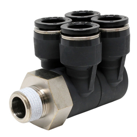 Đầu nối khí nén - khớp nối dạng khuỷu tay Pisco 2 tầng 2 nhánh 4 PAW12-03